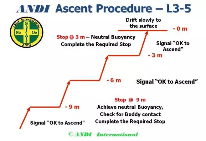 200尺/分的上升速率是疯狂的不对的,很容易得到减压病的,这一个上升速率在休闲潜水员于安全停留后的真实数据记录!事实上,在水中0-10米的压力变化是最大的,因此实在不宜在完成安全停留后赶急升上水面。由技术潜水员的角度来看,一次潜水活动是在离开水面后多个小时才告完成,而休闲潜水员也应视水面为另一个安全停留区。