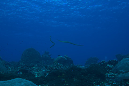 位于蜥蜴岛和10#彩虹珊瑚礁之间的孤立珊瑚礁。就像它的名字一样,在这个潜点可以找到著名的橄榄海蛇。对于进入它们领域的潜水员,海蛇感到十分好奇,并且也深深着迷于镜头。这个潜点深度从10到30米,可以找到各种无脊椎动物包括蛤、海星、海蛞蝓和海参。这片孤立的珊瑚礁也带来许多较大的鱼类,包括鲹鱼,梭鱼,鲨鱼和鹰鳐。