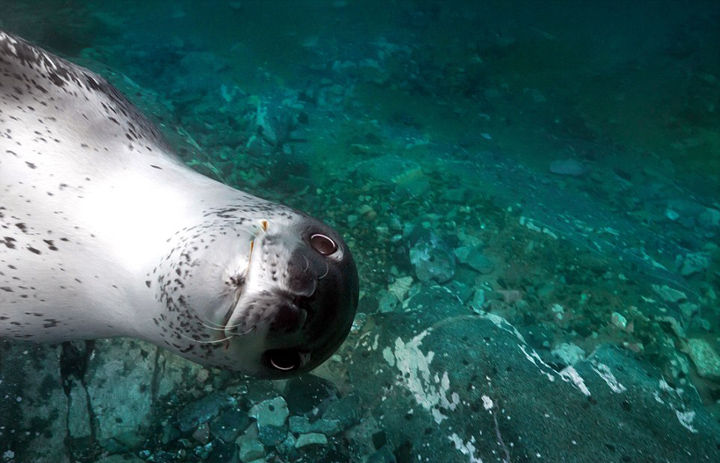 据英国《每日邮报》12月14日报道,37岁的法国摄影师亚历山大·瓦耶在南极洲潜水时有幸与海豹度过了一段美妙的时光,并拍摄下了这只海豹各式各样的有趣动作和可爱表情。画面中,这只顽皮的海豹似乎抑制不住内心的好奇,冲着相机摆出各种千奇百怪的姿势。“起初,这只海豹对我高度警惕,但当它发现我不带有任何攻击性的时候,它便放松警惕开始与我亲近。”亚历山大表示,海豹属于大型野生哺乳动物,具有一定的危险性,所以我们一定要带着友善的态度接近它们。