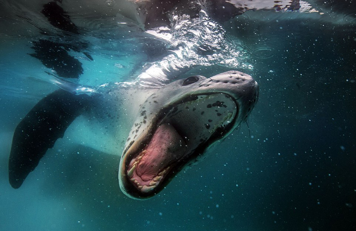 法潜水员抓拍海豹龇牙咧嘴可爱微笑卖萌,据英国《每日邮报》12月14日报道,37岁的法国摄影师亚历山大·瓦耶在南极洲潜水时有幸与海豹度过了一段美妙的时光,并拍摄下了这只海豹各式各样的有趣动作和可爱表情。画面中,这只顽皮的海豹似乎抑制不住内心的好奇,冲着相机摆出各种千奇百怪的姿势。“起初