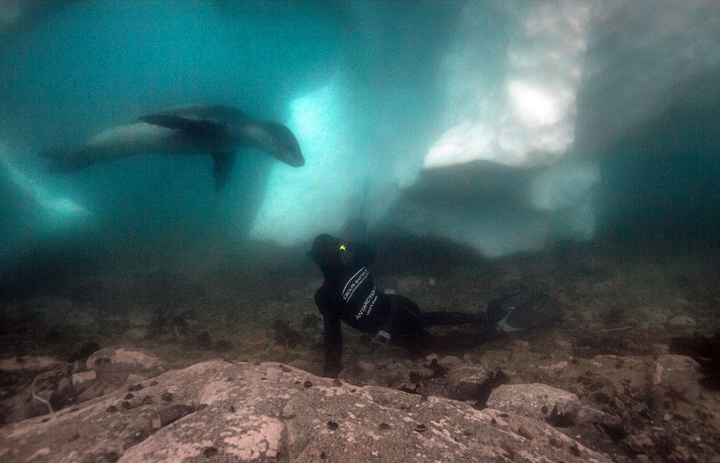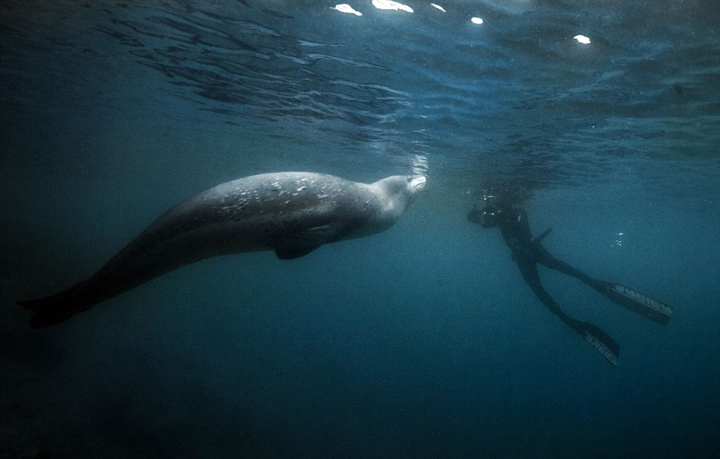 法潜水员抓拍海豹龇牙咧嘴可爱微笑卖萌