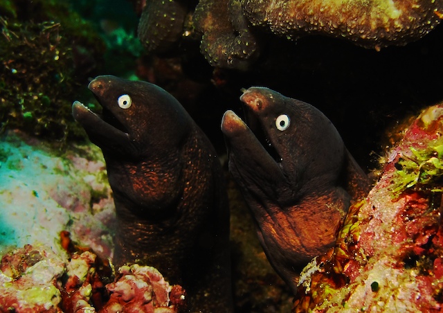 例如:鯊鱼、海鰻,虽然体内不含化学物质,但因其锐利的牙齿和具有攻击性,或身上具有发电器如电鰻等,亦可能会对人体产生危害。若在海中遇到有害生物千万不要惊慌,保持冷静,否则惊慌失措的你,会被误以为要突击它,反而会引起不必要的灾害。