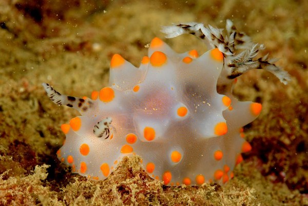 海蛞蝓,它是海中的小精灵,属于软体动物门腹足纲后鳃亚纲 ,俗名海麒麟、海牛、海兔、海鹿等。全世界已知超过三千种,外形稀奇古怪,多采多姿;雌雄同体,亦可相互交配;以齿舌进食,食性专一,不易饲养,是有毒的海洋生物,会分泌毒液与警戒色「危险勿触摸」。
