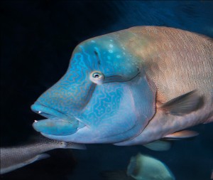 拿破仑是世界上最大的珊瑚礁鱼类,通体呈鲜艳的蓝绿色,上面布满了花纹,长着一对肥厚的大嘴唇。也是因为这对嘴唇,让它成了华人餐桌上的奢侈品,如今拿破仑已成了濒危的鱼类。