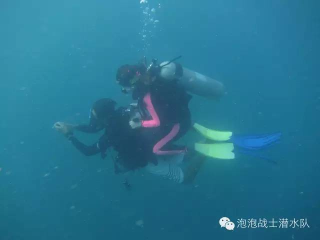 为了稳定学生的中性浮力,教练可以选择稍微拉住学生BCD的腰扣。要知道此腰扣距离腰部有段小距离,不那么容易产生身体触碰。教练也可以选择拉住学生的一级头部位。
