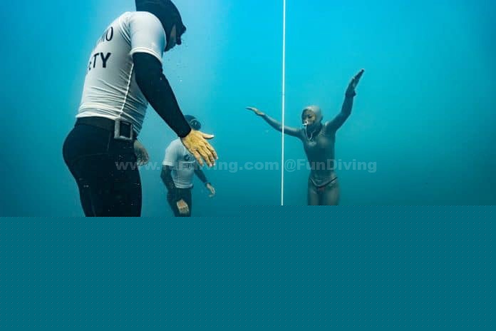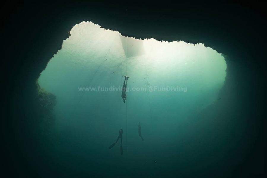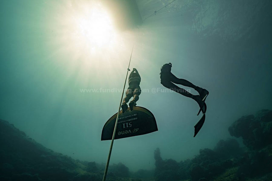 据介绍,“蓝洞深度挑战赛”是国际自由潜水比赛中级别较高的深度赛事,这项比赛要求参赛者在安全员的监督下,仅凭借一口空气,靠自身的力量下潜到海中的指定深度,再返回水面,并完成水面规定动作。该项比赛共设三个项目:恒重踢蹼下潜(CWT),攀绳自由沉降(FIM),恒重无蹼下潜(CNF)。其中,恒重无蹼下潜是对运动员的体力、耐力和意志力要求最高的项目,需要运动员没有任何辅助工具,仅仅使用自己的双手和双脚划水。