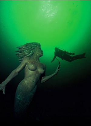 《海的女儿》童话故事浪漫唯美,人鱼公主凄美的爱情让人为之动容。在温哥华阳光海岸的水底,就有一条小美人鱼静候着潜水者的来访。这尊名为“翡翠公主”(Emerald Princess)美人鱼铜像由艺术家Simon Morris雕刻,她体态修长优美,长发飘扬,鱼尾碧绿,左手前伸,似期盼,又似挽留。“翡翠公主”于1989年定居萨特里湾(Saltery Bay)海底,这里由此得名“美人鱼湾”(Mermaid Cove),她如今已经成为了阳光海岸潜水的“代言人”。