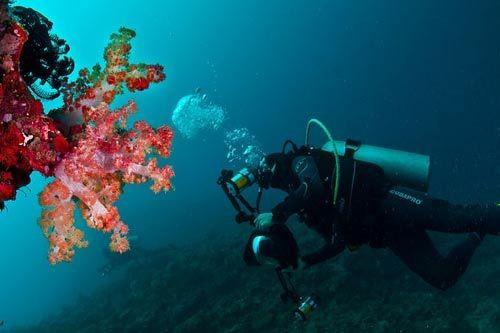 水肺潜水是世上成长最快的运动之一,它让各种年纪的旅客置身于令人赞叹的世中。拥有清澈温暖海域的斐济更是探险的绝佳胜地,在贝卡岛〈Beqa〉的对岸,太平洋港渡假中心是租用水肺的大本营,它也是斐济历史最久的潜水公司。他们提供训练和潜水旅游,也贩卖和检修器材。他们目前专门经营贝卡礁岩的潜水,你不必远赴外地或潜入深海,能看到成群的鱼类和珊瑚。行程对初学者和潜水老手都很适合,他们能目睹软珊瑚构成的迷宫,还有落差达数千公尺的峭壁。这里有三百多座岛屿,每座岛屿都被礁石所围绕,从这里可以看出礁石很接近,很容易到达。