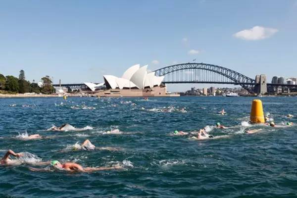 2. 面对悉尼大桥和悉尼歌剧院,在悉尼港湾里游泳