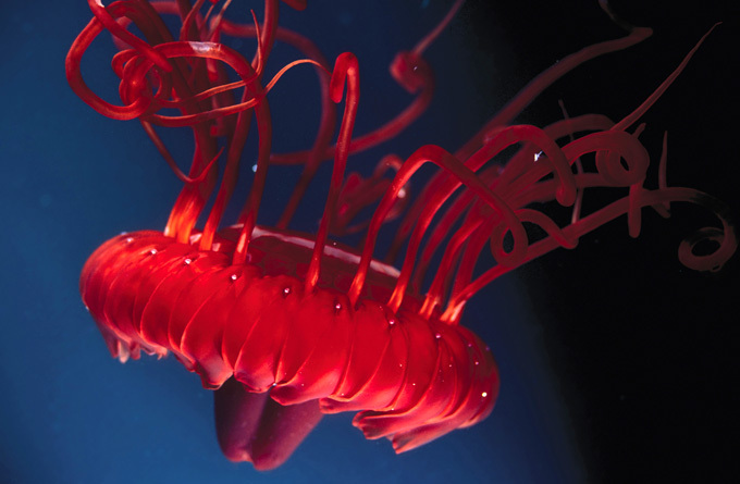 这是在大堡礁Osprey Reef深海的红水母,离Cairns约350公里。图片:AFP