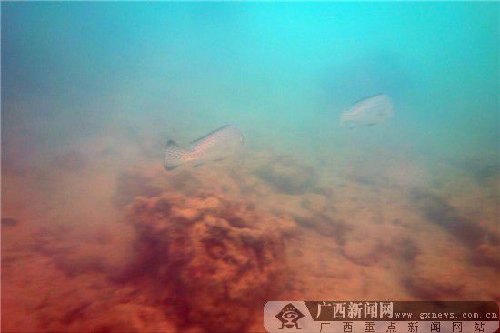 记者与鱼群近距离接触。广西新闻网记者 秦丽君供图