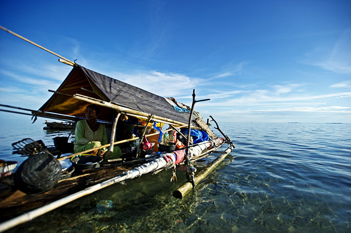 作为世界上仅存的海上牧民,戴安娜狭促的小船挤满了各式各样的日常生活用品——简便油桶,熏黑的汤锅,塑料餐具,一盏煤油灯和一对盆栽植物。巴瑶人在海洋上生活了好几个世纪,他们经常来往于菲律宾、马来西亚和印度尼西亚之间的海域。