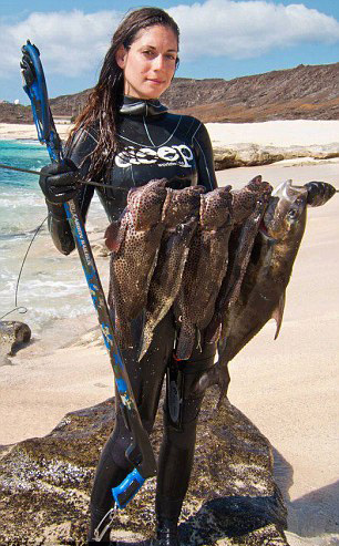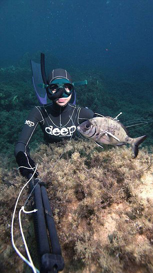 但是,她还有个巨牛的水下工作者身份——徒手捕鱼者。