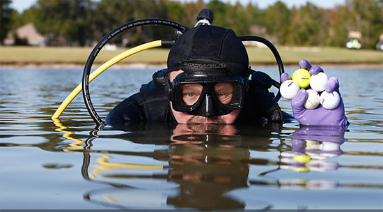 不过,职业的潜水捡球这个工作可真的是不容易,因为这不光光是个体力活,还时不时地面临着危险。关于这种潜水者因为自己的操作失误、或使用错误的工具、或碰到钓鱼线、或被树压到被淹死的事例很多。据媒体报道,就光光在过去四年之中,美国至少有四个做潜水捡高尔夫球的人被淹死,这里面有来自佛罗里达州拥有50多年潜水经验的75岁的老人,也有20几岁刚做这个职业的新手,后者的尸体就漂在了爱荷华州的Coeur d'Alene度假村里面围绕高尔夫球场果岭的水上。