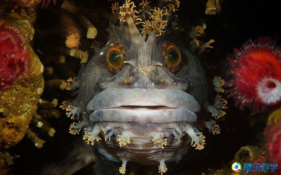 和海洋动物肖像类作品三等奖:这是Judy Townsend在佛罗里达州的蓝鹭桥上拍摄到的冠毛鳚。