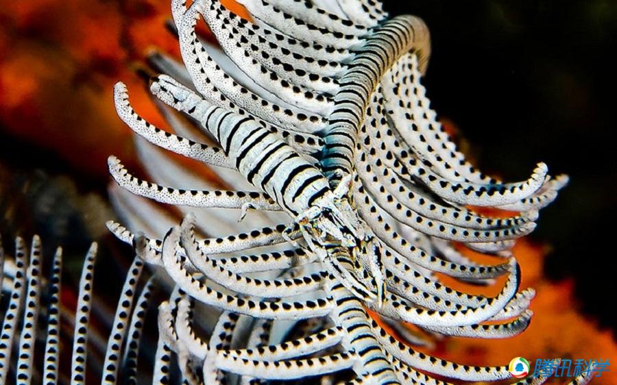 宏观类作品一等奖:这是Tony Barros在菲律宾杜马格特的锡基霍尔岛拍摄到的海百合寄生虾。