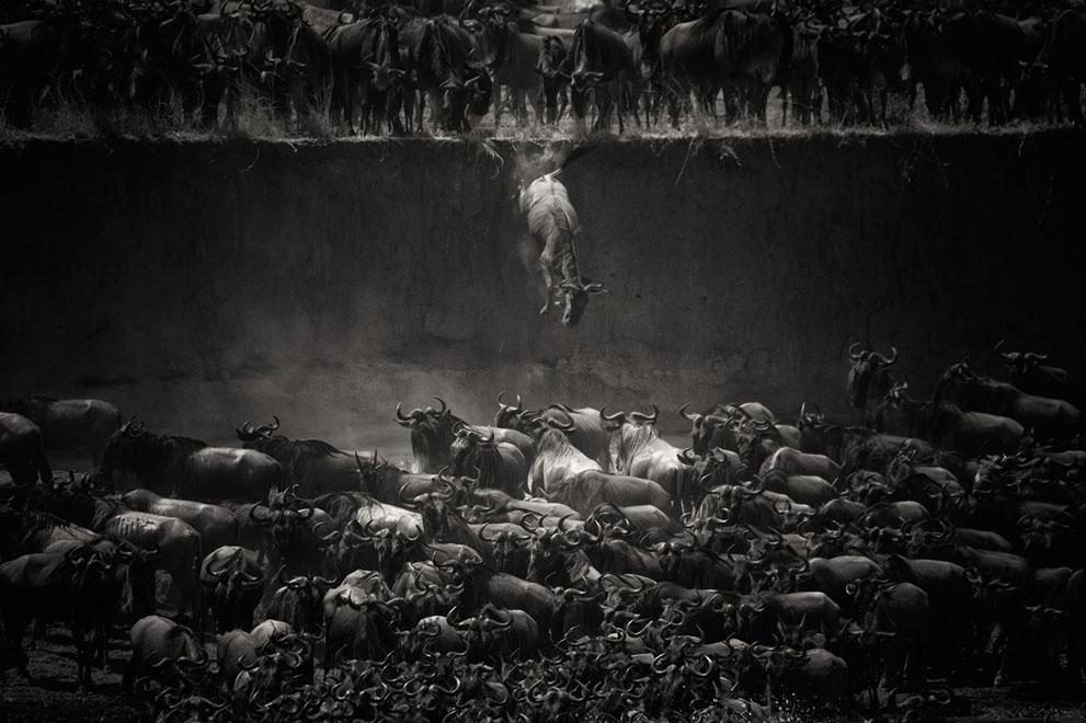 《自然类》获奖作品:“大迁徙”。马拉河上角马纵身一跳。拍摄于坦桑尼亚北塞伦盖蒂。(美国《国家地理》杂志摄影大赛/Nicole