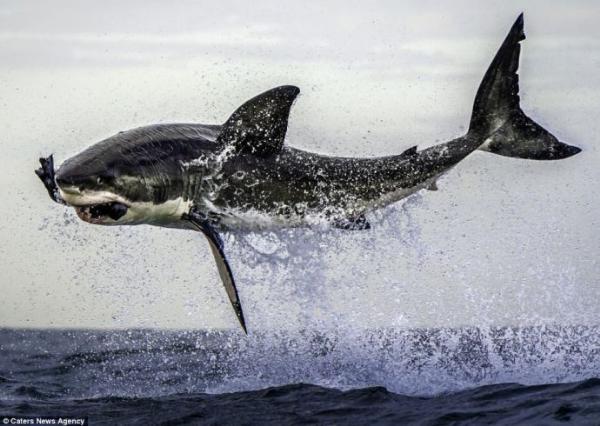 摄影师 Allen 的团队花了整整三天来用这只假海豹诱饵引诱鲨鱼出水捕食。最后,这只不明真相的大白鲨就这样落入了人类的圈套。