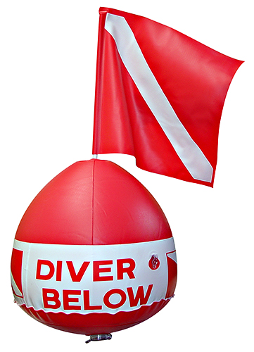 这种浮标由于体积大,不便于携带,需大量空气释放,所以通常只在固定潜水区域、离岸较近的开放水域教学、浮潜的时候使用。
