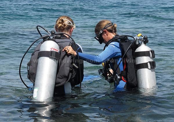 需要沟通的问题:二人在水下的沟通,是直接拉人?拍人?敲丁丁棒?喊名字?晃眼睛?还是其它方式。需要提前达成一致。有的潜水员不喜欢在水下被人拉和拍。