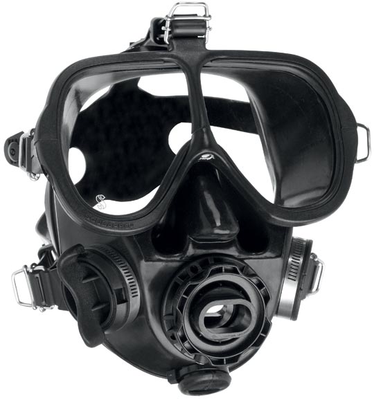 虽然传统式面镜可以满足大多数的休闲潜水和技术潜水的需求,但有时您还是会想要使用全面式面镜(Fullface Mask)。这款面镜是为污染环境或寒冷水域而设计,非常安全舒适。设有口和鼻的分隔气舱,减少无效通气空间,直接吸气,无需使用内置咬嘴,减少咬肌的疲劳,降低氧中毒抽搐的风险。技术潜水员如果水底呼吸高氧气体(Hyperoxic),在完成一趟长时间的潜水时,有可能会因为体内氧分压过高引起氧中毒,而氧中毒最致命的危险是抽搐;抽搐本身无大碍,但水底抽搐会掉落口中调节器而溺水。Fullface Mask多少降低这种风险。排气阀门安装在最低的位置。加大鼻部加压凹,可以无需用手进行平衡。矿物抗雾处理面镜和抗化学反应矽胶裙边。“五爪”蜘蛛型头带系统,配有不锈钢头带扣。佩戴安全稳固,单手操作调整。调节器“DIN”型接头和单向阀备用气源转换器。可移除面镜带固定扣,接上水下通讯系统。高大上的专业面镜款式。
