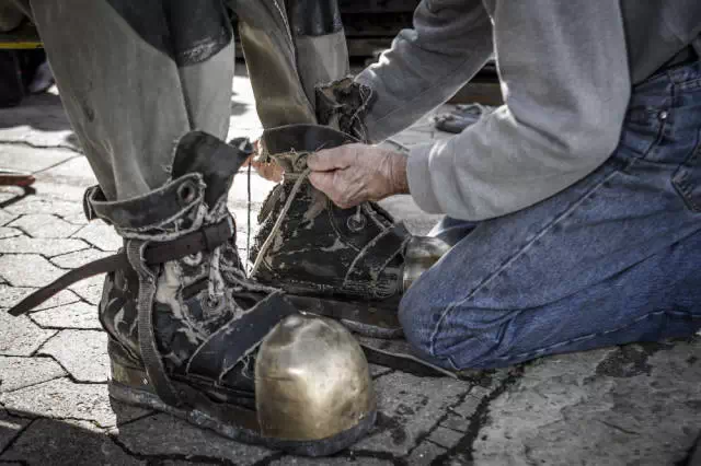 在穿好潜水衣后,这只沉重的铜质头盔将被用螺栓与衣服扣住。最后,头盔中央直径约为20厘米的视窗在下水之前也将被锁上以防进水。