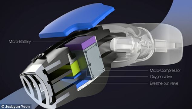概念系统采用一个非常小,但是效率很高的微型压缩机压缩氧气,并把它储存在气罐中