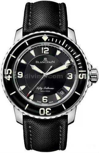 推荐理由:宝珀是历史最久的、最古老的的腕表品牌。一直只生产圆形表壳的手表,而且以皮带表居多,而且是仅有的几个从来都只生产机械表而没有石英表的品牌。五十噚系列腕表在性能上非常出色,这一款腕表的防水深度可达300米深度,且动力储备可达120小时,旋转表圈,且带有夜光功能,潜水时能做到精确计时。