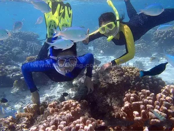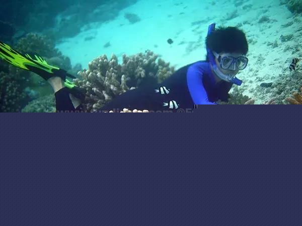 2、多以浮游状态在水面上,不要踩在珊瑚石上,那会踩断它们;