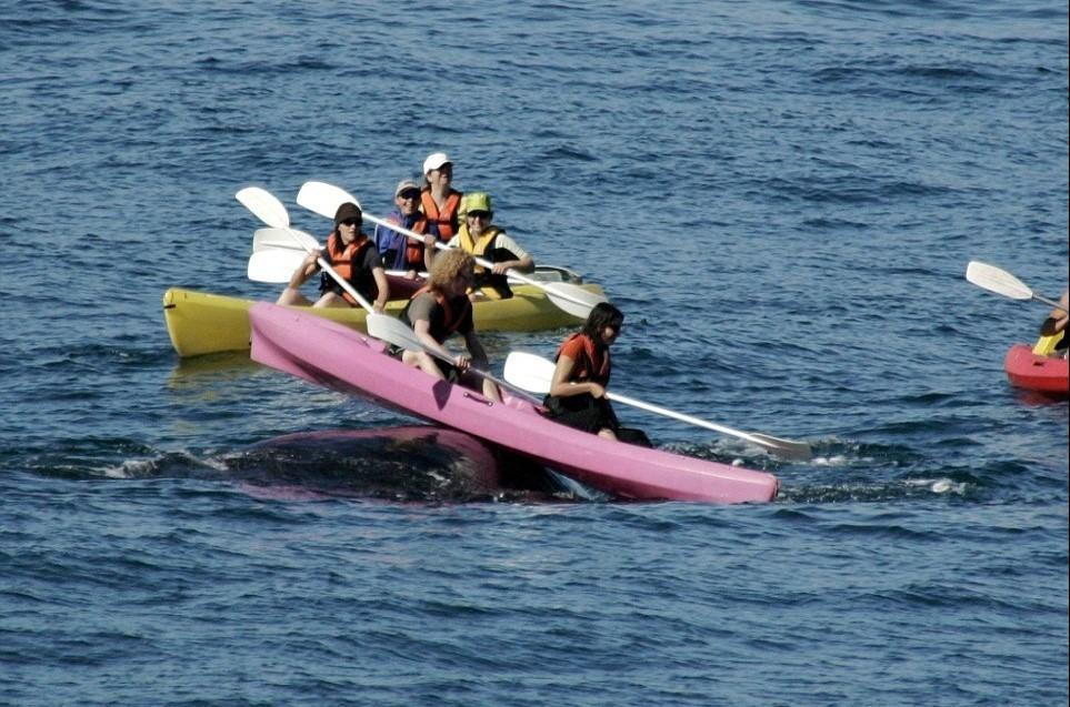 一名50岁的游客说:“当我们乘坐皮艇出海时,就会意识到我们人类是多么的无关紧要,因为海洋中像鲸鱼一样的生物实在是太巨大了。”这头鲸鱼的表现十分温顺:它先露出头,慢慢将皮艇托离海面,然后将皮艇轻轻放下,好像在说:“刚才对不起了。”