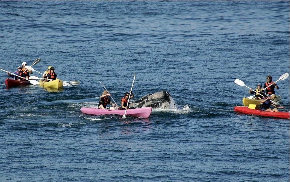 50吨鲸鱼现身 托起海上小皮艇,据《每日邮报》报道,两名游客在南非开普敦的海上划皮艇时,被一头50吨的南方露脊鲸从海面上托起。鲸鱼爱好者摄影师戴夫·德贝尔(veeBeer)用照片记录下了这惊险的一幕。当时,开普敦西南海岸线附近有一头南方露脊鲸正在他们皮艇下方游动。过了一会儿,