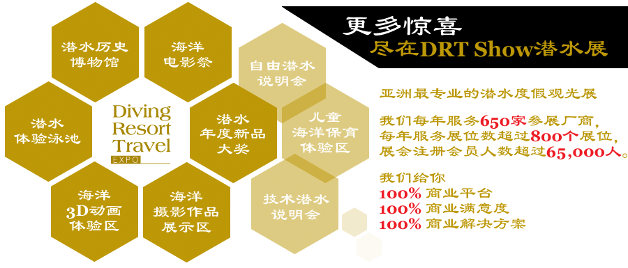 万众期待的潜水人聚会香港国际潜水展暨度假观光展(DRT Show)明天即将在香港会展中心开盛大开幕。今年看点依然不会让观众失望,来自全世界和本地的28位VIP演讲人出席说明会及研讨会。内容精彩纷呈不容错过。仅在香港DRT才能见到的新品设计大赛亦是年度重戏。同时,为了感谢对香港潜水业有着杰出贡献的人,组织方也将特别设立终身成就奖奖项,谁将获得此项荣誉,12月11日揭晓。