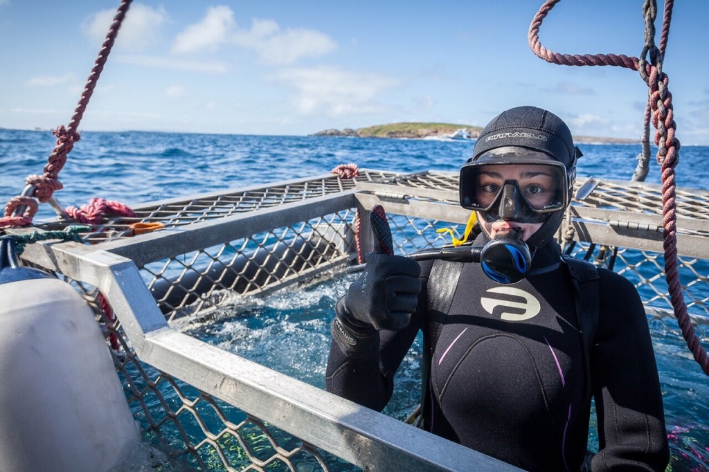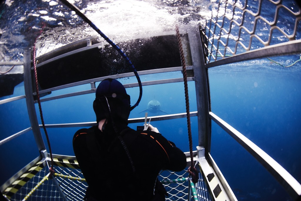 现在,如果你去南澳大利亚的Lincoln港,就可以坐进一种最新的Aqua Sub(玻璃潜水箱)里欣赏大白鲨。这种潜水箱可以容纳最多6~8个人,整个箱子的形状就像一艘小船,通体是透明的,客人先坐进漂浮在水面上的潜水箱中,待人坐齐后关上舱门,再慢慢地深入海中,在这个过程中,可以一边品尝美食、饮料,一边欣赏海底美景,还能邂逅经常出没在这里的大白鲨呢!