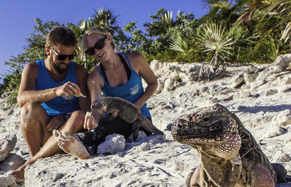 国际在线专稿:据英国《每日邮报》8月17日报道,美国一对酷爱冒险的夫妻福瑞特·贾伦特(Forrest Galante)和杰西卡·艾文丝(Jessica Evans)近期在巴哈马大埃克苏马岛上举行了一场为期5天的别开生面的婚礼,鳄鱼、鲨鱼等食肉动物悉数列席,惊险刺激的程度让人跌破眼镜。本身是荒野生存专家的贾伦特和他的新娘艾文丝在交换了婚礼誓言之后,马上就撕掉了婚纱,一起开始了他们的“特别”婚礼。他们在岛上和鲨鱼、巴拿马“会游泳的猪”、鬣鳞蜥等野生动物进行了亲密接触。还一起潜水到海底洞穴喂鲨鱼食物。