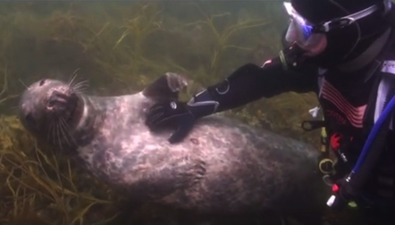 这名现年55岁的男子格雷森(Gary Grayson)来自索 尔福德(Salford),当时 他与其他潜水员一同前往锡利群岛(Isle of Scilly)潜水。当他们见到那只大西洋灰海豹(Atlantic Grey Seal)时,立即产生好感,于是他自告奋勇与它玩耍,并请朋友帮忙摄影。