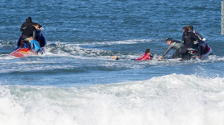 现年34岁的米克·范宁被称为“白色闪电”,是澳大利亚的冲浪传奇,他分别在2007、2009和2013年ASP世界巡回赛中赢得冠军。在这次事件中,他表示,“我感觉什么东西被我冲浪板的绳子卡住了,我踢了几下没有踢开,然后我看到了一个巨大的背鳍……我等着鲨鱼的牙齿向我咬来,然后用冲浪板戳它的后背。”