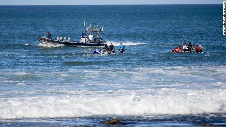7月19日,在南非杰弗里湾举办的世界冲浪大赛,发生鲨鱼闯入比赛现场攻击选手的意外事件。澳大利亚著名冲浪运动员米克·范宁在比赛期间遭到大鲨鱼袭击,惊险逃脱,整个过程被现场录像记录下来。