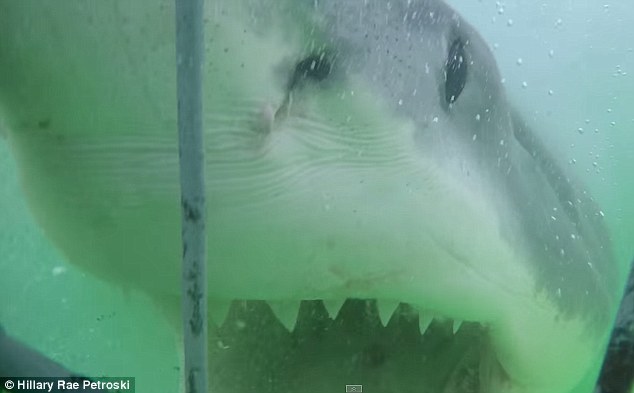 紧接着,希拉里把相机举出了海面,她尖叫道:“噢我的上帝!”大白鲨似乎被她的声音转移了注意力,转向了笼子的另一边。最终,它终于感觉到疲倦,放弃了笼子里的“大餐”,转身游走了。