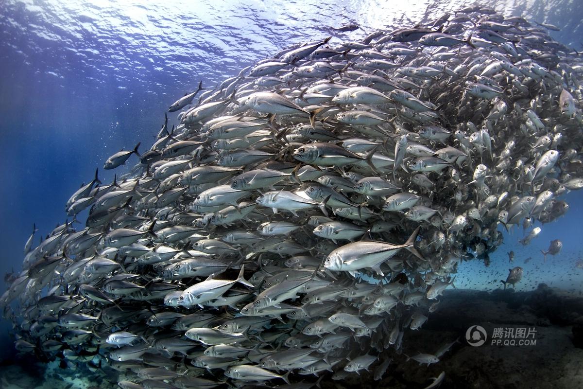 这组震撼的图片记录了一名潜水者被龙卷风一般的鱼群包围的震撼场面。当天,来自美国加州圣迭哥的Tori Hester正在墨西哥的卡布帕摩珊瑚礁区潜水,忽然,一个巨大的鱼群朝她游了过来。Tori的丈夫Jeff当时在现场,用水下相机捕捉下了这惊人的一幕。
