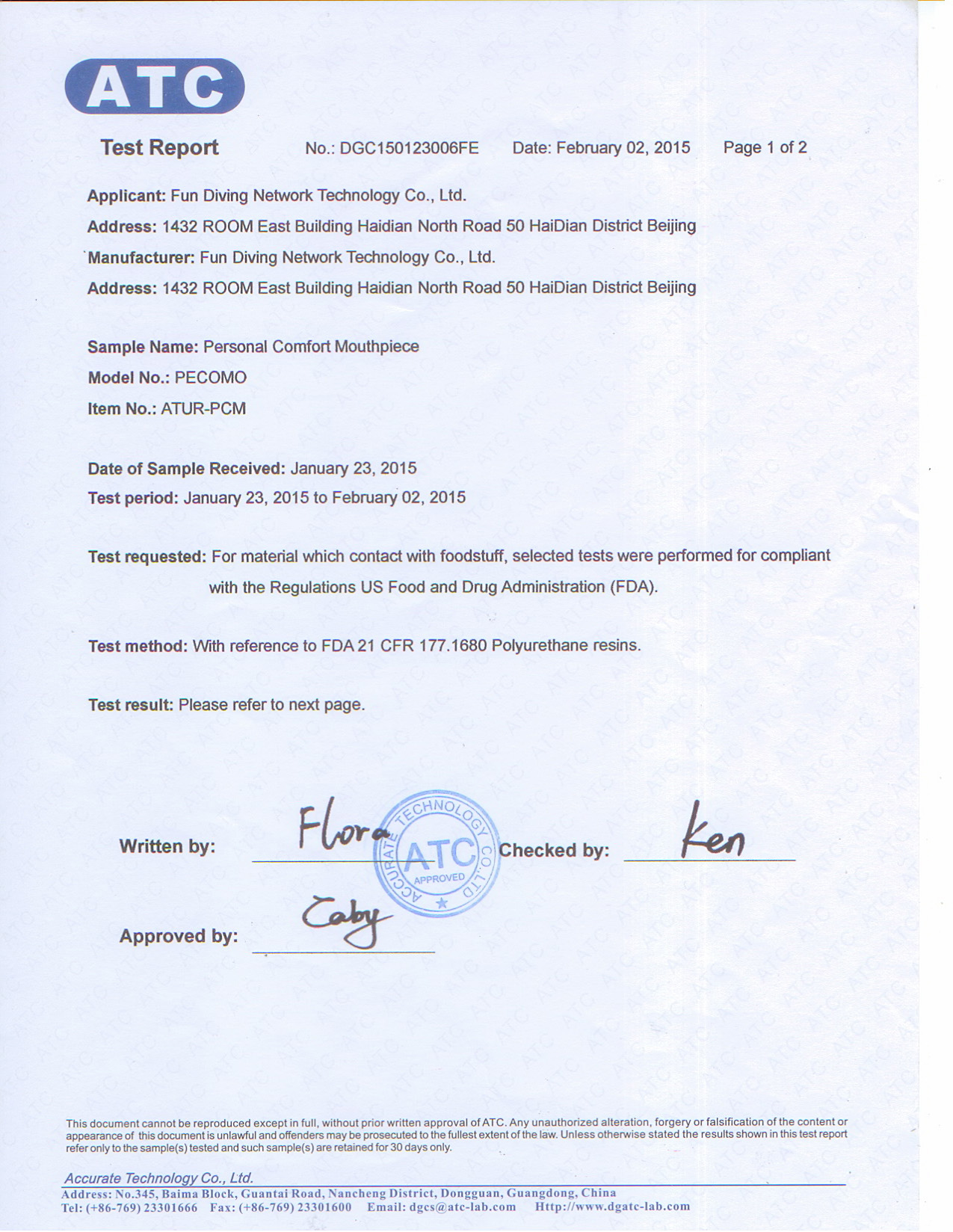 - 舒适、独特的AturDive PoCoMo可塑型咬嘴的特殊材质对温度的感受性较高,在正常使用中必须避免长时间的阳光暴晒,使用后请用淡水冲洗。