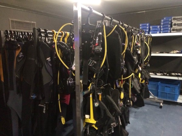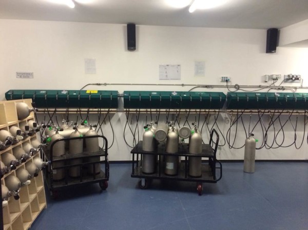 独立的气瓶填充压缩机,高氧压缩机,全套充气设备,水下长喉,办公室全套维修工具,最深十米,盛着一万多立方恒温30度的泳池,这里被称作“全世界最高端大气的潜店”了。