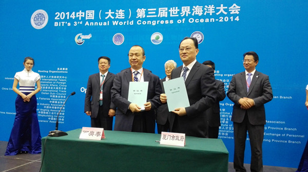 台海网(微博)10月30日讯 (海峡导报记者 张顺和)近日,第三届世界海洋大会、2014国际潜水救捞与海洋工程技术论坛在大连隆重举行。厦门市副市长张灿民率市商务局、市会展局相关负责人出席,并见证了2015年国际潜水救捞与海洋工程装备展览会和2015年第四届世界海洋大会落户厦门。