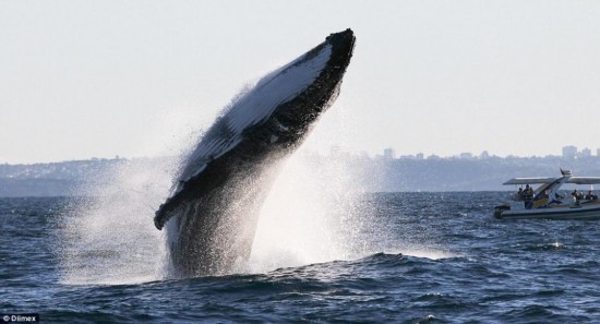 当地时间27日15时30分,一头重约40吨的座头鲸在距悉尼港入口仅仅2公里的地方跃出海面,向游客们展示了它令人惊叹的身形。