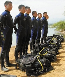 石家庄市公安消防支队从各中队精选的11位消防官兵,经过10天的培训取得了潜水资格证书。这意味着,石家庄从此有了专业的水下救援人员,遇到特大危急水下事故时,能够更好、更快地组织救援。