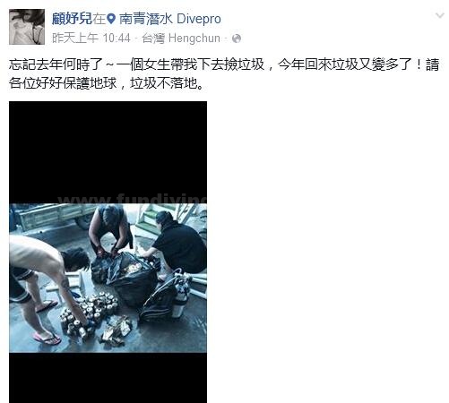顾女一名李姓友人向媒体投诉,指顾女昨天上午还贴脸书指潜水到海中捡垃圾,一切还那么好;顾女爱潜水,也有数年经验,没想到竟然发生这种事。