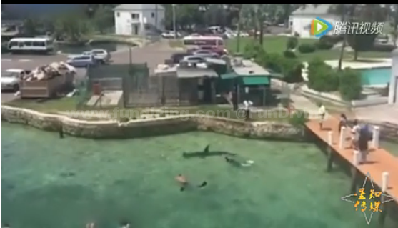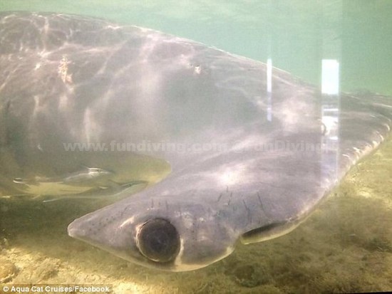 据英国《每日邮报》报道,巴哈马新普罗维登斯岛一座小船坞中惊现一条4米长的巨型双髻鲨。当时周围还有一群潜水者跟踪观察。 “好奇宝宝”一般的大眼睛