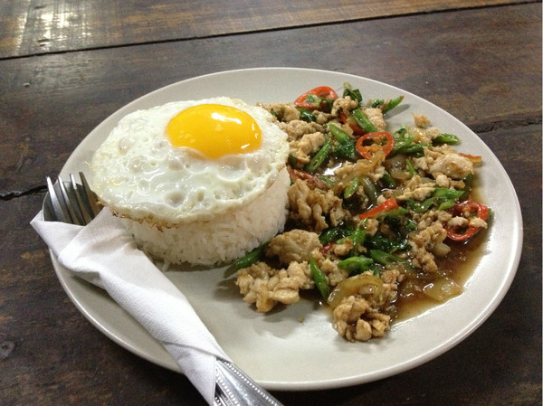 下面的是泰国的一个家常盖饭,padkapao,也是不错的哦。
