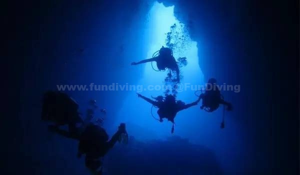 当然,如果你是资深潜水爱好者,也可以在这里寻求更刺激的冒险——深海潜水。到达16米高的天然岩壁裂缝,潜水者可以顺着岩壁爬升。