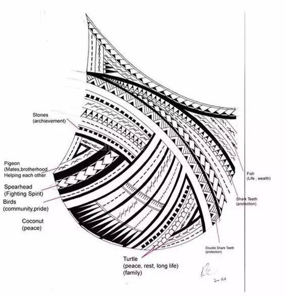 萨摩亚人的纹身图案依人而异,图案常联系家庭历史、个人性格与对家庭荣誉和对照顾家人的承诺。